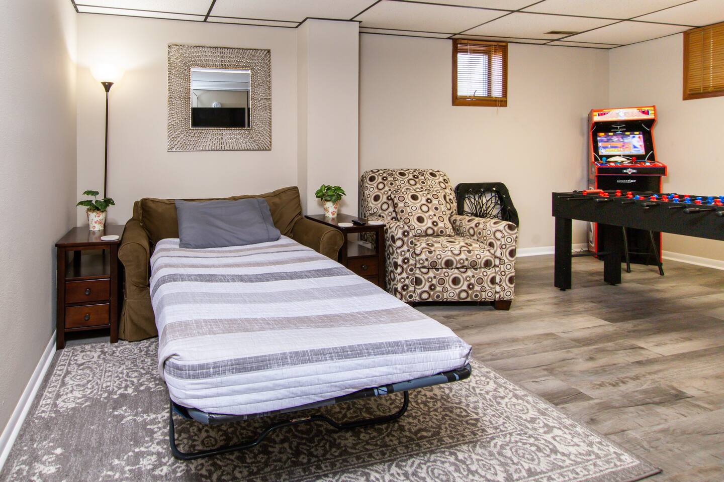 Our home is tucked away in a quiet neighborhood in Rapid City. It is centrally located amongst all the attractions that western South Dakota has to offer. What guests love about our listing: ➥Centrally located between Mt. Rushmore, Badlands National Park, Custer State Park, Wind Cave National Park, and all the other attractions in the area. ➥Arcade games and foosball ➥Professionally cleaned and sanitized between each guest ➥Covered front porch that is perfect for relaxing after a long day of sightseeing. ➥Free in-suite laundry ➥Off street parking ➥Easy self check-in via secure door keypad ➥Fast Wi-Fi on our 55 inch smart tv What some guests don't love about our listing: ➥There are two houses on the same lot so the parking lot is shared but there is plenty for everyone Our home sleeps 10 guests with 3 queen beds, 3 single beds, and 1 single sized sofa sleeper. ➥All beds complete with fresh sheets changed between each guest ➥Extra sheets and pillows are provided in case they are needed Complimentary Wi-Fi, tea, and coffee. The kitchen is stocked with plates, glasses, silverware, cooking utensils, basic cookware, and all the standard kitchen appliances. Enjoy your stay, we hope it feels like home!