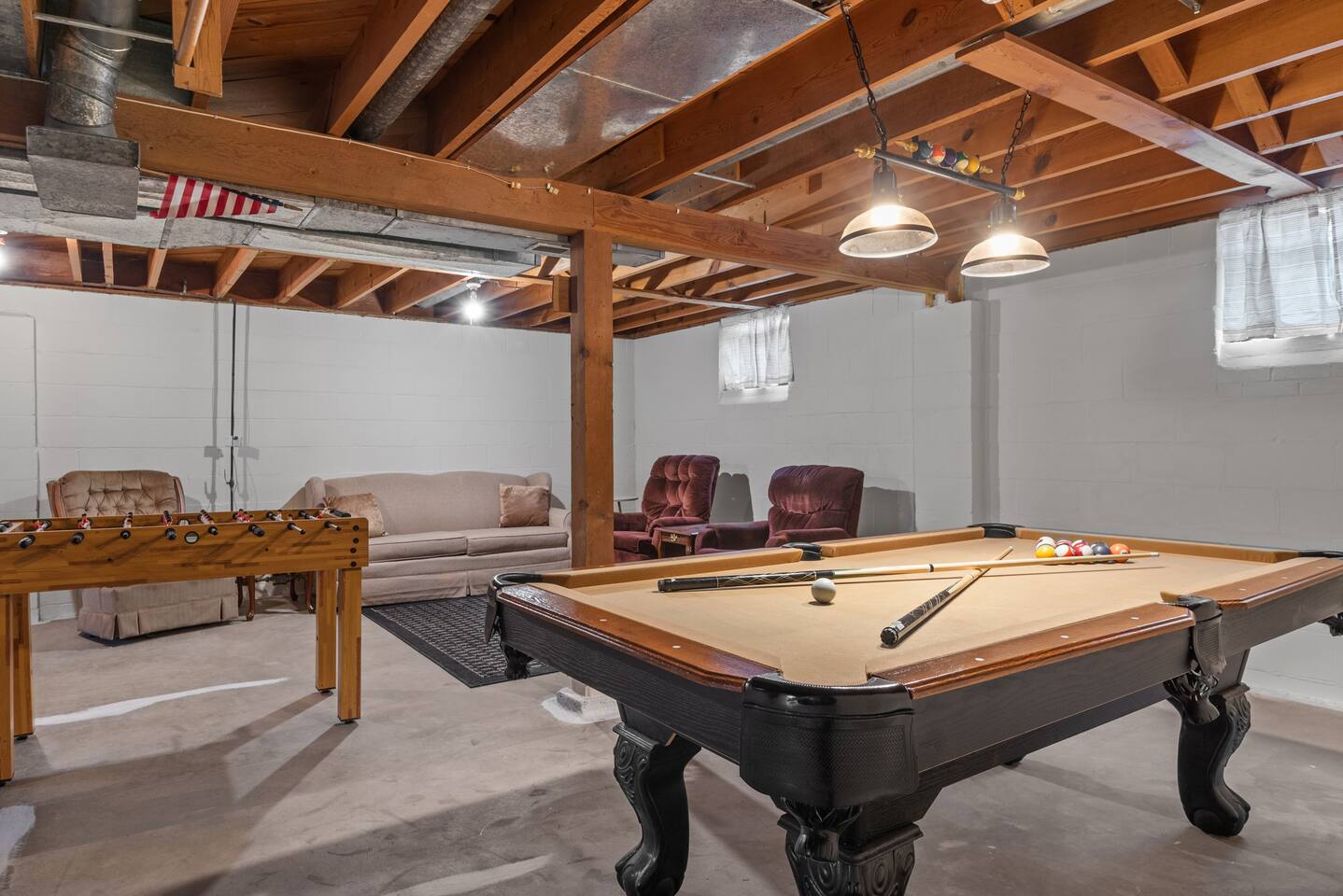 The house is located in the central part of Rapid City providing easy access to The Monument event center and the Rapid City Executive Golf Course. It It is centrally located amongst all the attractions that western South Dakota has to offer. What guests love about our listing: ➥Game room with pool table and foosball. ➥We are a 10 minute walk to The Monument. This is great if you are in town for a concert or sporting event. ➥Centrally located between Mt. Rushmore, Badlands National Park, Custer State Park, Wind Cave National Park, and all the other attractions in the area. ➥Professionally cleaned and sanitized between each guest ➥Free in-suite laundry ➥Off street parking ➥Easy self check-in via secure door keypad ➥Fast Wifi What some guests don't love about our listing: ➥The game room and laundry is in the unfinished basement that has cement floors. There are some rugs placed throughout the basement area. ➥The basement tends to vary from the main level in temperature. We only have one thermostat for the whole house. Our home sleeps 8 guests with one queen bed, two full beds, and one sofa sleeper. ➥All beds complete with fresh sheets, a light comforter, and a blanket. Complimentary Wi-Fi, tea, and coffee. The kitchen is stocked with plates, glasses, silverware, cooking utensils, basic cookware, and all the standard kitchen appliances. Enjoy your stay, we hope it feels like home!